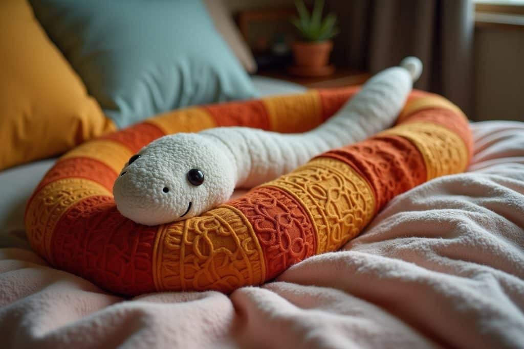 - Bänder und Pompons: Befestige bunte Bänder oder Pompons an der Bettschlange, um sie noch verspielter zu gestalten.